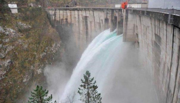 Brana je jedna od najviših u Evropi, sa visinom od 220 m i dužinom od 269 metara. Poplavni talasi se ispuštaju kroz preliv sa ustavama (sa ukupnim kapacitetom 1.670 m3/s) i preko sistema ispusta na sredini visine brane (koji se sastoji od tri ispusta prečnika 2,5 m opremljena ustavama, smeštena na polovini visine brane). Maksimalni kapacitet ispusta na sredini visine brane je 373 m3/s.